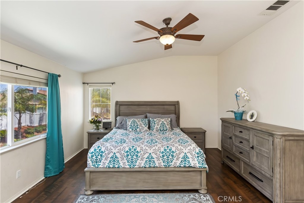 Beautiful home in the Copper Canyon area set on a prime cul-de-sac. This 2900 sq. ft. find has five bedrooms with one bedroom and bath on the main floor and an office/bonus room. Inviting double door entry into a sweet home with a bright and open floor plan. Tile flooring downstairs and stunning wood laminate flooring upstairs and on the staircase. Kitchen is open to the family room with a cozy fireplace. Plentiful cabinets in the kitchen with central island for cooking and entertaining. Four bedrooms upstairs along with the spacious master bedroom. Master bath is huge and has two large closets and plenty of counter space for all your needs. Large upstairs laundry room with washer and dryer included. Window blinds and ceiling fans throughout. The backyard has seat walls spanning the back and is ready for lots of summer fun! And located on a nice cul-de-sac, can’t be beat. No homeowners association dues and near award winning schools. Just minutes to the 15 freeway. A great home in a highly desirable community!