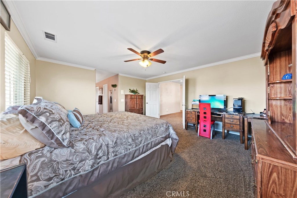 Welcome home to 38098 Clear Creek Street! This turnkey Copper Canyon home offers 4 bedrooms (plus an Office with a built-in desk and Murphy bed that can easily converted into a downstairs 5th bedroom) 3 full bathrooms, a 3 car tandem garage and a tastefully upgraded kitchen that features beautiful granite countertops, rich mahogany cabinets, stainless steel appliances, a 5 burner stove and a double oven. The kitchen island opens up to the Family room, with its cozy fireplace, making it ideal for entertaining. Make your way to the backyard which offers a covered patio, bubbling hot tub (included) and plenty of grass for your family and pets. Additional upgrades include custom 18 inch tile throughout entry, kitchen and bathrooms, crown molding, wood laminate flooring, plush carpet and plantation shutters throughout the lower lever. The master suite offers a generous sized bathroom with his and her sinks, separate soaking tub and shower, vanity station and an oversized jack and jill walk in closet. You'll find 3 additional oversized bedrooms on this level. No HOA and approx 1.6% tax rate. Located within the award winning Cole Canyon school district, this gorgeous Copper Canyon home won't last long! Come tour it today!